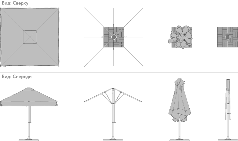 Основание зонта: зонт комплектуется специальным основанием с четырьмя бетонными плитами